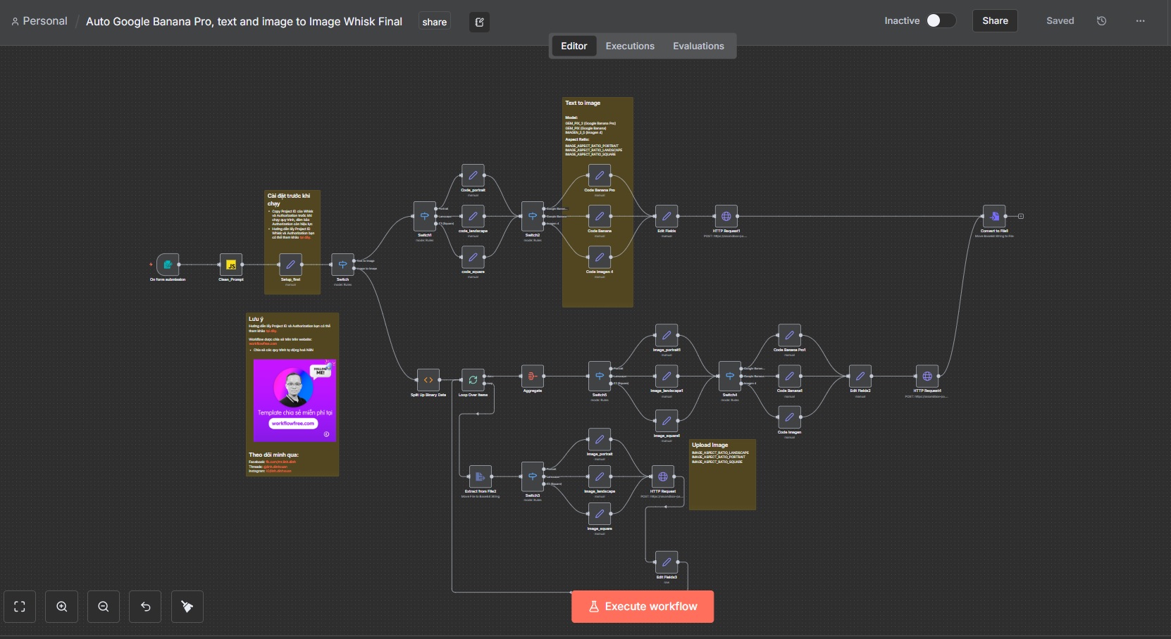 Quy trình có thể tạo được text to image, image to image với Google Banana Tại đây
